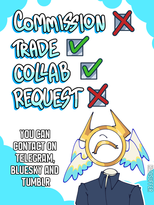 A little about the last point in the DNI list. Idc if you like their arts/comic/game. Please don't interact with me, if you support them. My drama with Hexagon is not fully resolved, but we agreed not a countinue this anymore.I don't support bullying/cyberbulling and I speak as their victim of bullying